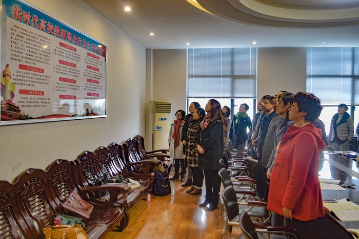 會上,全體教職工齊誦《新時代高校教師職業(yè)行為十項準則》,會議還就“創(chuàng)文”迎檢等相關(guān)工作進行安排部署。