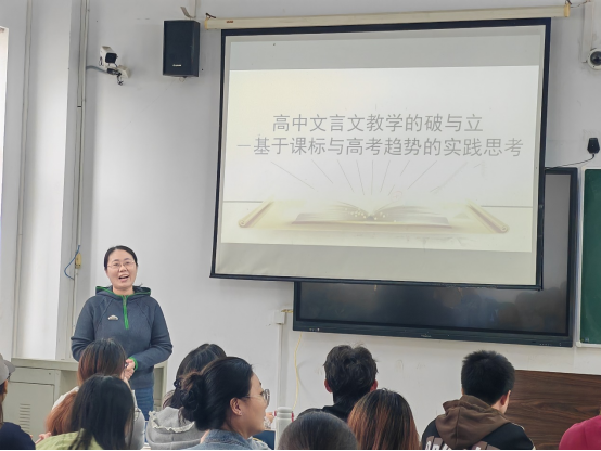 會(huì)上,魏老師聚焦中學(xué)語(yǔ)文教育的變革趨勢(shì),從“群文解讀”“跨學(xué)科融合”等前沿視角展開(kāi)剖析。她提出,文言文教學(xué)內(nèi)容已從單一文本拓展至多元素材,例如將影視資源引入課堂,開(kāi)展儒家經(jīng)典《侍坐》與道家經(jīng)典《庖丁解牛》的聯(lián)讀教學(xué),打破了傳統(tǒng)文言文教學(xué)的邊界;在能力素養(yǎng)培養(yǎng)上,實(shí)現(xiàn)了從讀寫(xiě)基礎(chǔ)訓(xùn)練到核心素養(yǎng)培育的進(jìn)階,讓教學(xué)目標(biāo)更具育人深度;學(xué)習(xí)方式也從學(xué)生被動(dòng)接受到主動(dòng)實(shí)踐探索轉(zhuǎn)變,鼓勵(lì)學(xué)生在探究中感悟文言魅力;價(jià)值導(dǎo)向上,更是完成了從知識(shí)傳遞到全面育人的升華,讓文言文成為涵養(yǎng)學(xué)生品格的文化載體。